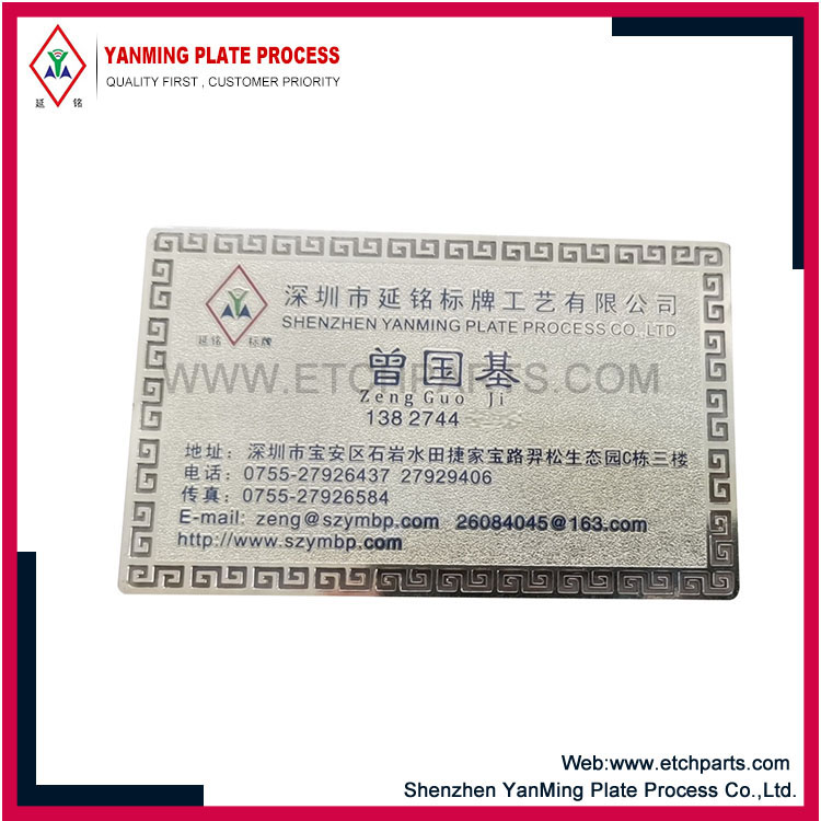 O Yanming® é uma fábrica de gravação de fotos na China, fornecendo diferentes tamanhos de cartão de visita de metal de luxo com nossas mais recentes linhas automáticas de produção de gravação de ácido químico de ácido metálico, dedicamos a nós mesmos a oferecer o cartão de visita de metal de luxo mais precisão e outros produtos de metais, Heartenvoy, a visitar a gestão da gravidade ou envie sua inquietação para Hearten@panellylayy.